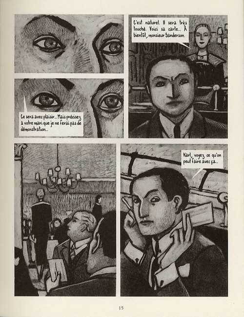 Ambientato nei ruggenti anni Trenta, tra una Parigi da cartolina e una New York caotica,”Il baule Sanderson” rimanda alla particolare atmosfera del cinema d’antan, raccontata con un tratto polveroso di pura e potente atmosfera, sviluppato con linee spesse e neri profondi. Una storia lineare che null’altro vuole rappresentare se non la teatralità della vita, attraverso un registro narrativo che trova nella bicromia delle tavole una luce particolare che ben illustra la semplice complicatezza dei protagonisti.