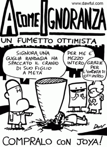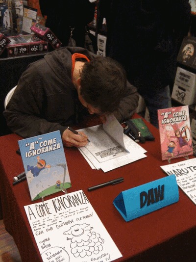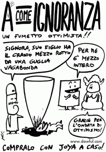 La prima raccolta di “A come Ignoranza” vendette a Lucca di quell’anno (2006) più del noto saggio “Writing for comics” di Alan Moore – edito tra l’altro dal tuo stesso editore (l’Associazione ProGlo) – ed è stato più volte ristampato andando regolarmente esaurito. C’è di che andarne fieri… sai quanto ha venduto complessivamente? Nonostante la scarsa diffusione e la promozione praticamente nulla del tuo piccolo editore quanto vendi a ogni uscita?