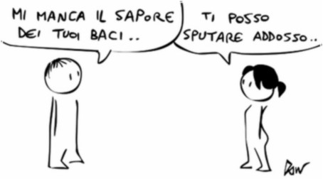 A Lucca di qualche anno fa vidi un volumetto… ora non ricordo bene il titolo forse “cento frasi d’amore” o “cento modi di dire ti amo”, comunque era palesemente copiato da LOV con tanto di coppietta, l’uno con la frase d’amore e l’altra con la risposta (caustica, nel mio stile) solo che realizzata con i disegni di un altro: tutte le battute al di fuori del plagio facevano cagare.