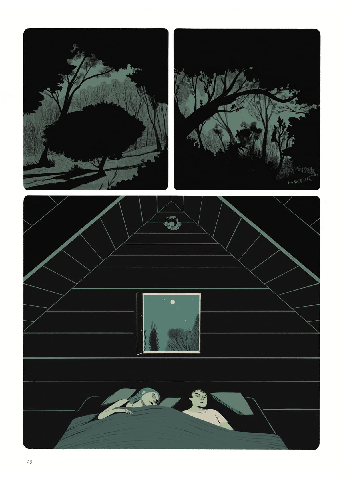 Laura Pérez sceglie di affidarsi a una narrazione quasi completamente grafica, intervallata da brevi sequenze di dialoghi. Una scelta vincente, avvalorata dall’utilizzo del nero , totale e persistente in cui i suoi disegni, le sue tavole eleganti e mai banali nelle costruzione, i suoi paesaggi onirici e le sue meditabonde figure umane si stagliano nel buio, a volte soffocante, a volte accogliente. Bel volume da un’autrice che si spera possa essere pubblicata più spesso in lingua italiana.