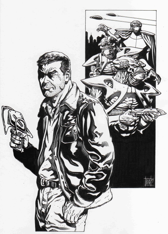 Come già anticipato, io amo il genere, lavorare per Brad Barron è stato assolutamente esaltante, perché arrivando da Mister No, dove il maggior impegno richiesto era lavorare sui personaggi e le ambientazioni naturalistiche, ho potuto dare libero sfogo all’immaginazione. Tutta la tecnologia fantascientifica, ma anche i mostri che ho disegnato in quei miei albi di Brad, sono elementi che in Mister No si erano visti pochissimo o quasi niente, ma che in realtà penso di avere sempre avuto nel mio background visivo. L’elemento di congiunzione poi che univa i due personaggi erano proprio gli anni ‘50, periodo storico molto stimolante da rappresentare e dal quale sono partito nell’immaginare oggetti e mezzi futuribili, tipici di un certo cinema.