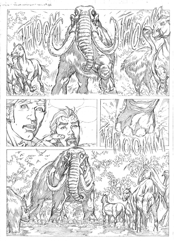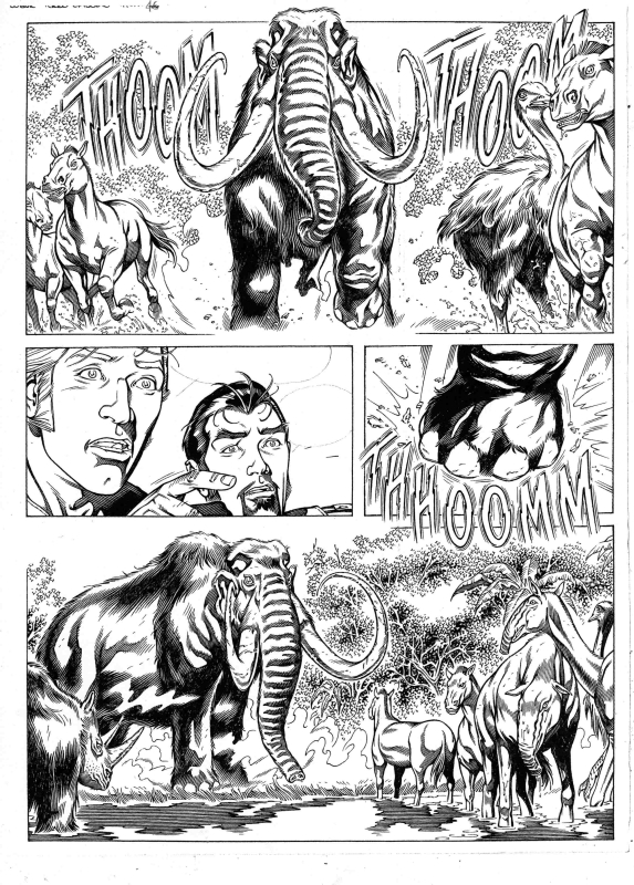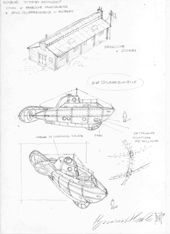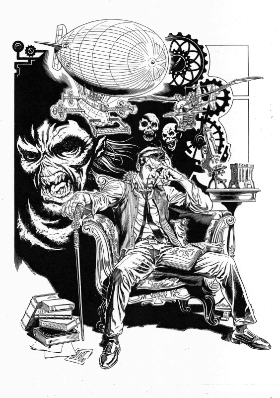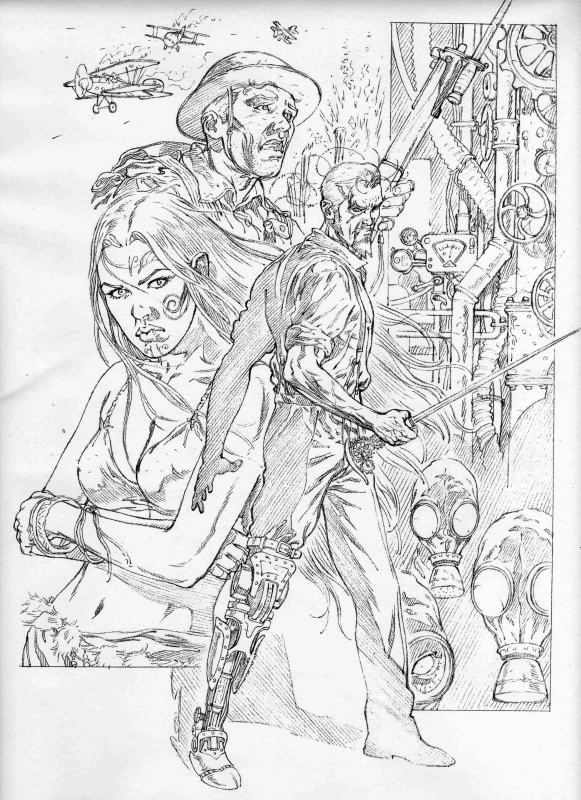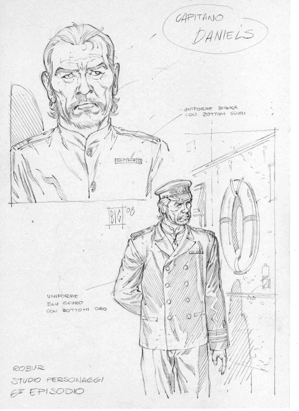 Per questo progetto di miniserie, più che in altri tra quelli precedentemente realizzati dalla Bonelli, è stato prodotto un gran numero di disegni preparatori, a cura di Gianmauro Cozzi,  che con grande abilità e precisione, ha disegnato la maggior parte dei mezzi, più i vari protagonisti comparsi negli albi. Su esplicite direttive di Serra, quindi, noi tutti ci siamo basati su questi studi preparatori, ma ognuno di noi ha avuto modo di inventare altrettanto all’interno della serie. Personalmente sono stato l’ideatore di alcuni elementi dei quali vado fiero, tra questi il Bastone di Greystorm, la sua Gamba metallica, il suo laboratorio visto nell’albo 6, la nostra simpatica mummia, il malefico insetto che zombizza la gente, gli zombie, le maschere antigas, l’imponente Mammuth e tante altre cose, senza dimenticare di aver reinventato la versione definitiva di Ian Thompson e la versione finale di Hoanui, con le dreed e il suo tatuaggio tribale sul braccio. Per quanto riguarda la documentazione aggiunta invece, l’aver letto da ragazzo 20000 leghe sotto i mari di Verne ha costituito un aiuto quantomeno emozionale, nell’approccio ad alcune situazioni che ho disegnato, spingendomi a riproporre lo spirito di quella lettura, all’interno dei miei disegni. Devo segnalare anche una serie di albi fotografici, della Hulton Getty Picture Collection, denominati “decadi del xx secolo”,  tra i quali i numeri che vanno dal 1900 sino al 1920, che  hanno costituito un notevole aiuto, oltre alla documentazione trovata in internet.