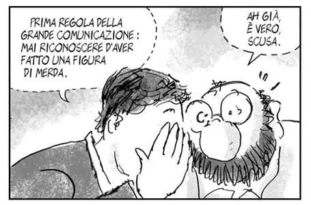 Quello che rimane immutato anche in questa ultima opera, è lo spirito di Sergio Staino/Bobo, quel guardare al teatro della politica con gli occhi dell’uomo normale, di chi, da fuori dei giochi che contano, tiene sempre in massima considerazioni gli ideali che dovrebbero muovere chi al potere ci arriva, soprattutto quegli uomini di sinistra (?) che invece paiono tradire la filosofia a cui dichiarano di appartenere – e deludere Bobo, facendolo incazzare – nello stesso momento in cui poggiano i loro sederi sulle poltrone che contano.