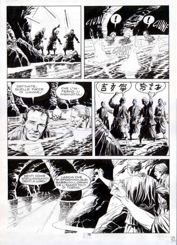 Una pagina deve avere un equilibrio, anche drammatico oltre che estetico e narrativo. Alla Bonelli, e questa è una regola non mia che a molti lettori sfugge, non si vedranno mai tavole composte di una serie ripetuta di primi piani, come invece avviene per esempio in un fumetto come Dago, peraltro un capolavoro, salvo qualche eccezione molto rara, dovuta a stringenti esigenze narrative o di drammaticità. Le tavole di un fumetto bonelliano devono avere varietà equlibrata, per cui in ognuna deve esserci il primo piano, il campo lungo e la panoramica: non deve mai esserci un affastellamento di un tipo solo di queste inquadrature. Ed è la lezione di Sergio Bonelli.