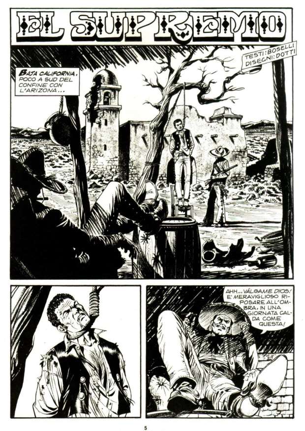 Però ci sono degli equilibri da rispettare. Il grande Villa si innamora molto spesso del primo piano, Santucci invece fa delle inquadrature angolate che si addicono di più alle storie horror che al West (e infatti adesso Marco lavora su Dampy). Tornando a Maurizio Dotti, invece lui è classico, ha appreso la lezione dei direttori della fotografia di John Ford, e sa molto bene quando c’è bisogno di profondità o quando è il caso di narrare da lontano e chiaramente la sceneggiatura asseconda queste qualità.