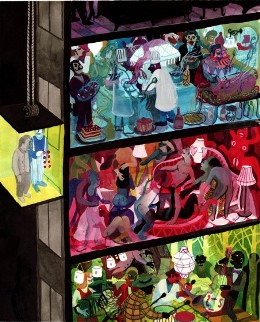 Brecht Evens a soli ventiquattro anni crea un’opera dalla forza dirompente: il trionfo del colore regala schegge di un mondo fantastico infinito, tavole magiche da spiare una a una, che lasciano ammirati per quella che sembra un’innata, istintuale sapienza costruttiva, supportata da un forte immaginario d’artista, che cita e reimpasta suggestioni da tutti i mondi visivi immaginabili: arte, pubblicità, cinema, incubo.