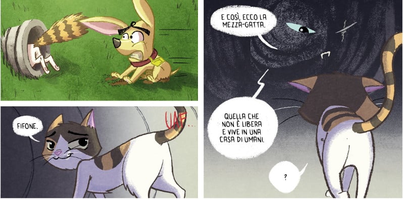 Quando uscì Leonid in Francia ebbi un mezzo coccolone: stavo lavorando da tempo all’idea di Brina, e loro uscivano con qualcosa che – a primo acchito – poteva apparire simile! Poi Frédéric e Stefano sono amici (Brrémaud ha anche scritto la bella prefazione a fumetti di Brina, disegnata da Federico Bertolucci) e non ci fu vera invidia. Però decisi di non leggere Leonid per non rischiare di rimanerne influenzato. Quello che mi viene da dire è che forse rientra nello zeitgeist attuale: i gatti vanno forte!
