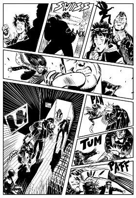 Anzitutto che la cura editoriale deve ancora migliorare, visto che un’insufficiente revisione ha danneggiato la resa di una tavola (pag. 47) altrimenti costruita impeccabilmente. Un piccolo dettaglio, la posizione di due balloon nella settima vignetta, fa inciampare la lettura, guastandone il sapore.