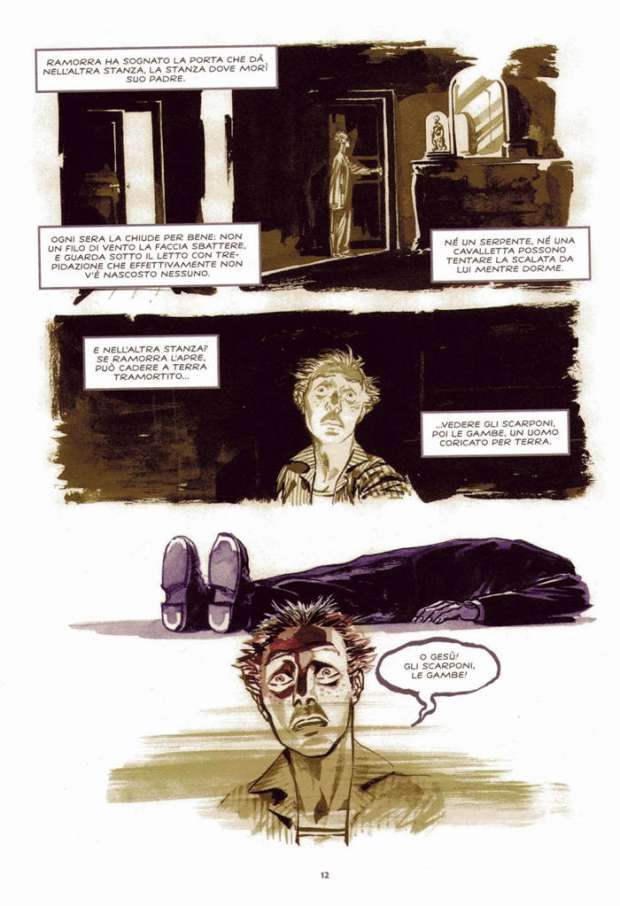 Ho operato tagli per rendere più fluida la narrazione da un punto di vista visivo. Il testo ha dei gangli difficili da rendere con immagini o punti che potevano risultare ridondanti se illustrati. Per rispondere anche alla tua precedente domanda, se decido di adattare a fumetti un testo cerco di manipolarlo il meno possibile, per riprodurre l’emozione visiva che si è creata in me alla prima lettura di quel testo. Altre volte, invece, la letteratura ha ispirato mie storie e in questo caso i testi di altri autori danno spunto alla mia scrittura. Un mio prossimo libro, nato dall’attività del collettivo Action30 e scritto insieme a Pierangelo Di Vittorio, Versus, parte da uno spunto offertomi da un racconto di Dostoevskij…