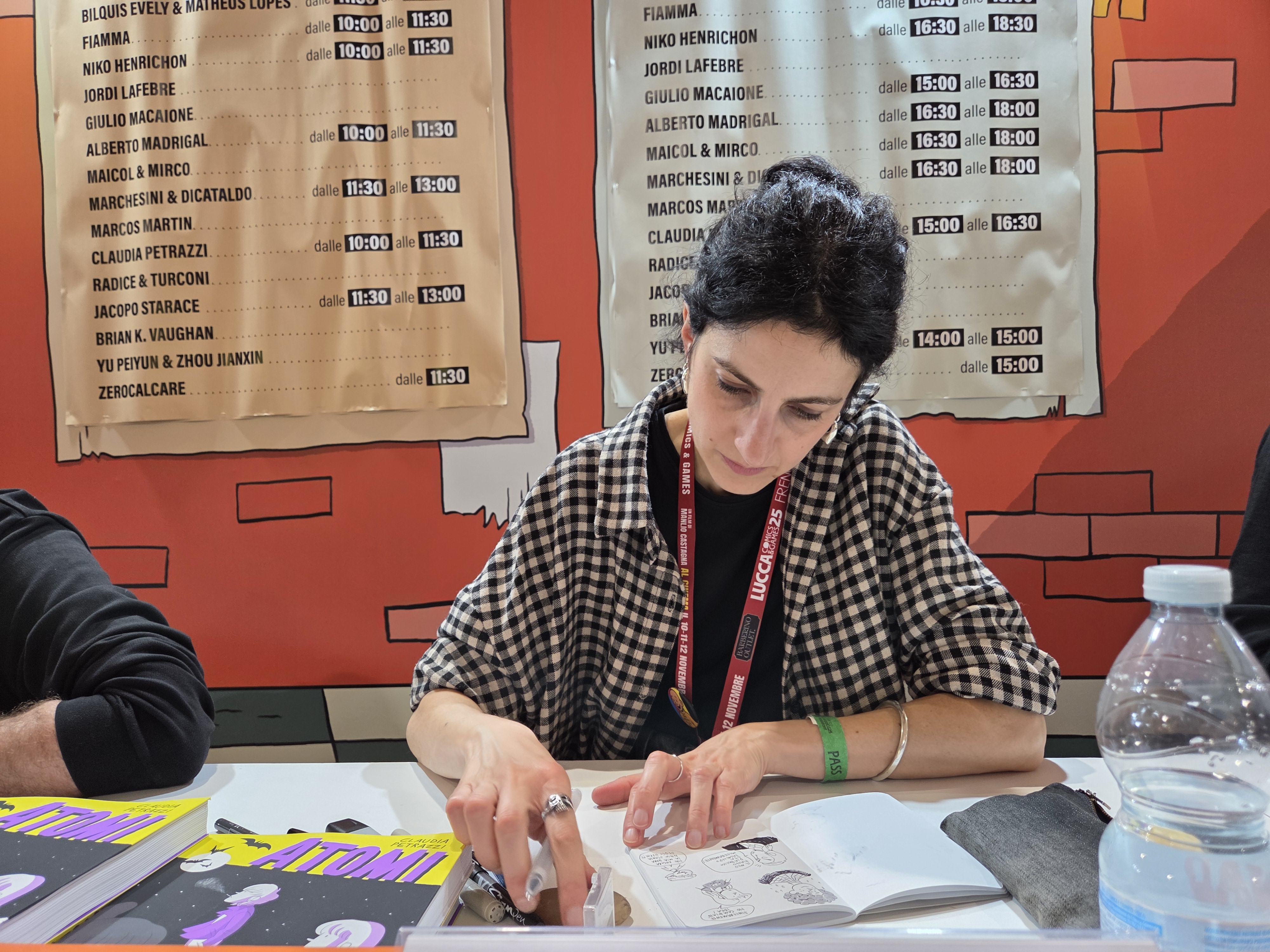 Claudia Petrazzi è una fumettista e illustratrice toscana. Dopo aver conseguito il diploma all’Accademia di Belle Arti di Perugia inizia la sua carriera nel campo dell’animazione e dell’illustrazione. Successivamente si sposta nel mondo del fumetto, realizzando i disegni di Clara e le ombre, titolo scritto da Andrea Fontana e pubblicato da Il Castoro. In parallelo pubblica sul proprio blog il suo primo fumetto da autrice completa: Atomi, che nel 2025 diventa un titolo targato BAO Publishing. (tratto da baopublishing.it/autori/claudia-petrazzi/)