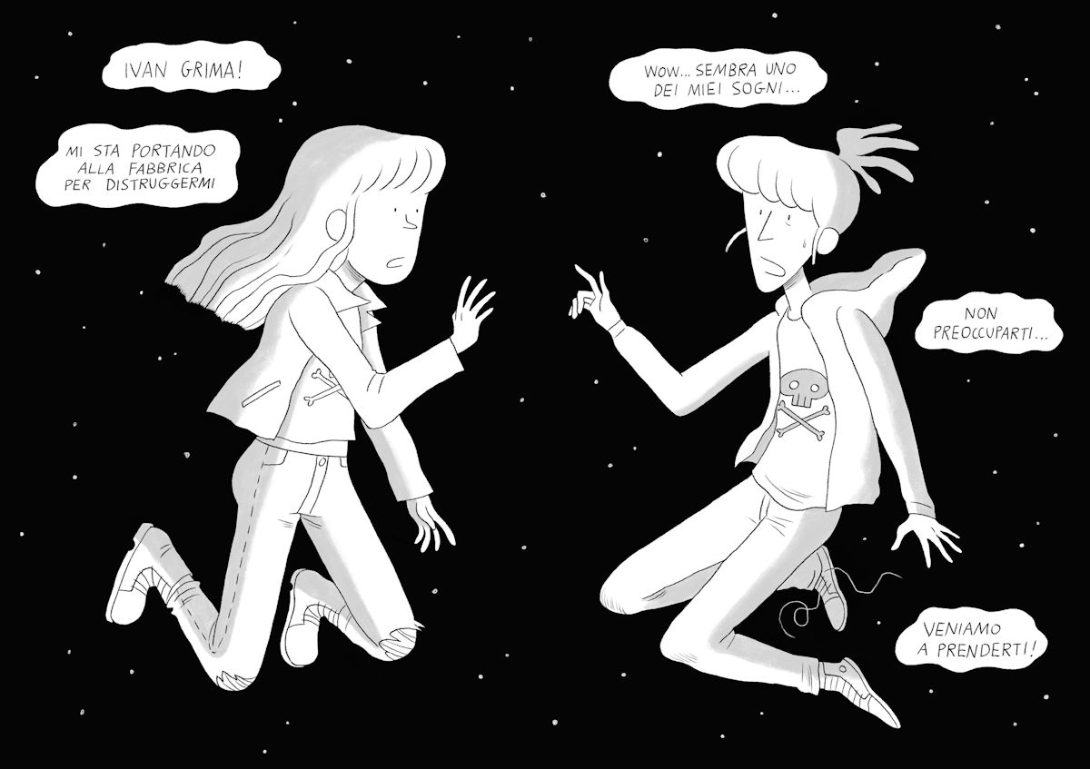 In parte sì, sono le due metà di come mi sono vista, o di come ho creduto di vedermi, per molto tempo. In realtà ce ne sono molte di più, come per tutti e tutte noi, ma la semplificazione in questo caso è legata al fatto che mi interessava puntare l’attenzione sul concetto di autostima, di amore verso sé stessa. Una cosa che ho scoperto durante la lavorazione è che appena ti metti su carta e cerchi di rappresentanti, diventi anche altro da te: il tuo personaggio acquisisce una vita autonoma e prende decisioni in base alla storia e alle vicende che gli cuci intorno. È un’operazione molto interessante, che ti porta anche delle sorprese, a volte.