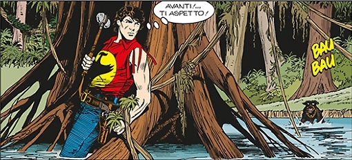 Sul versante grafico, Kerac è autore di una prova convincente, con fisionomie ben definite che si stagliano chiare sul contesto, e una resa molto buona degli ambienti, che si tratti dell’intrico di piante di una palude o delle polverose e affollate strade di una cittadina del west. Ottimo complemento alle sue tavole è una colorazione che rende davvero piacevole sfogliare le pagine, combinando parsimonia nelle sfumature e abbondanza di colori. Quello che colpisce di più, nel serbo, è l’abilità di rendere i volti: anche gli scagnozzi dalla vita più breve sono fortemente caratterizzati, ma soprattutto grande attenzione è dedicata a protagonisti e comprimari. Con il risultato di recuperare parte della dimensione narrativa e della presa sul lettore che si erano perse per la meccanicità della trama. Il trattamento Kerac si rivela efficace per Zagor e Jim, restituendocene versioni al contempo personali e riconoscibili, ma forse raggiunge il suo risultato più interessante in Cico, con la rinuncia a renderne il faccione rotondo nel consueto modo macchiettistico a cui siamo abituati nella serie regolare, in favore di una figura decisamente più realistica, che ben si adatta al ruolo per nulla comico ricoperto dalla spalla dello Spirito con la Scure per questa storia.