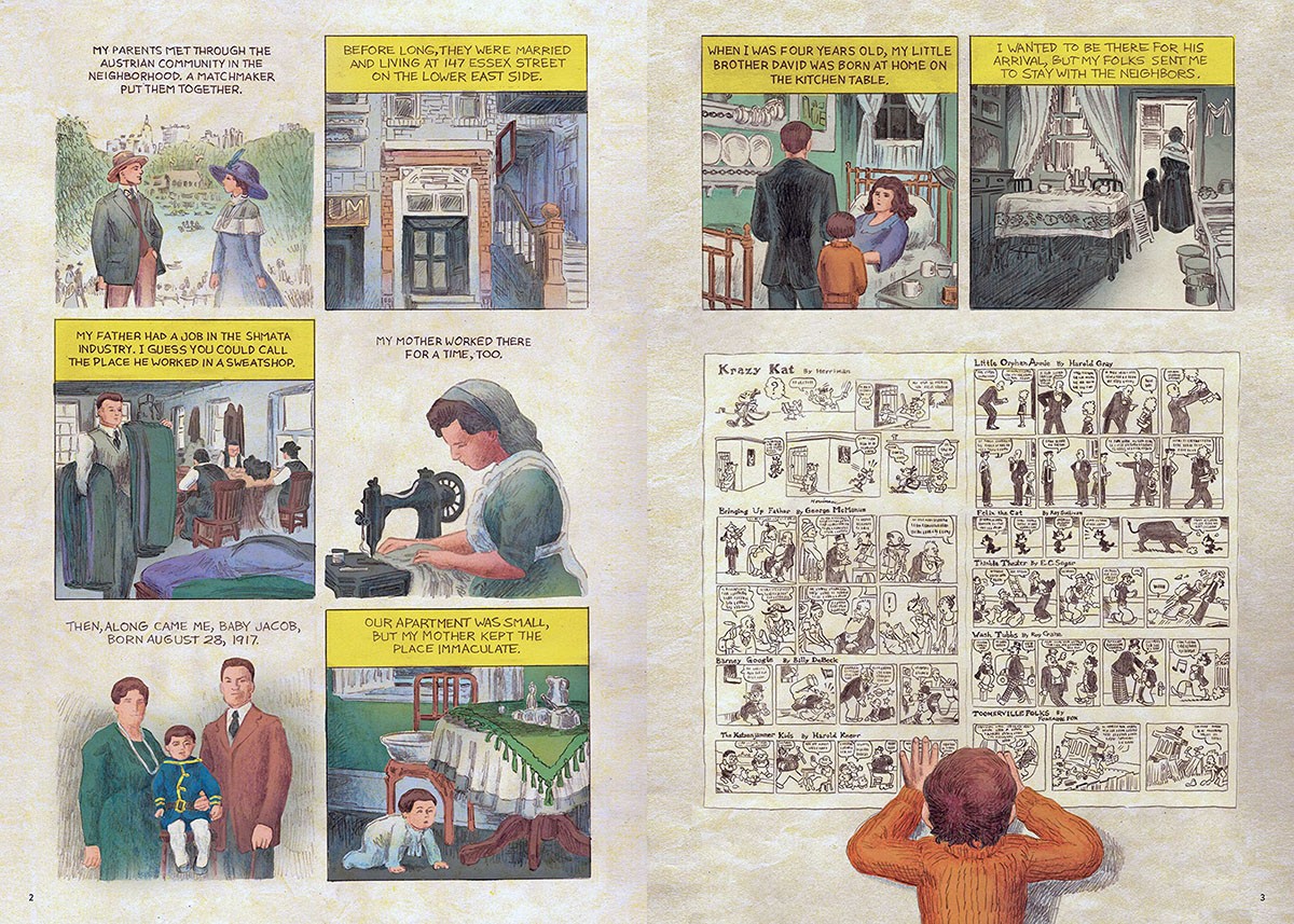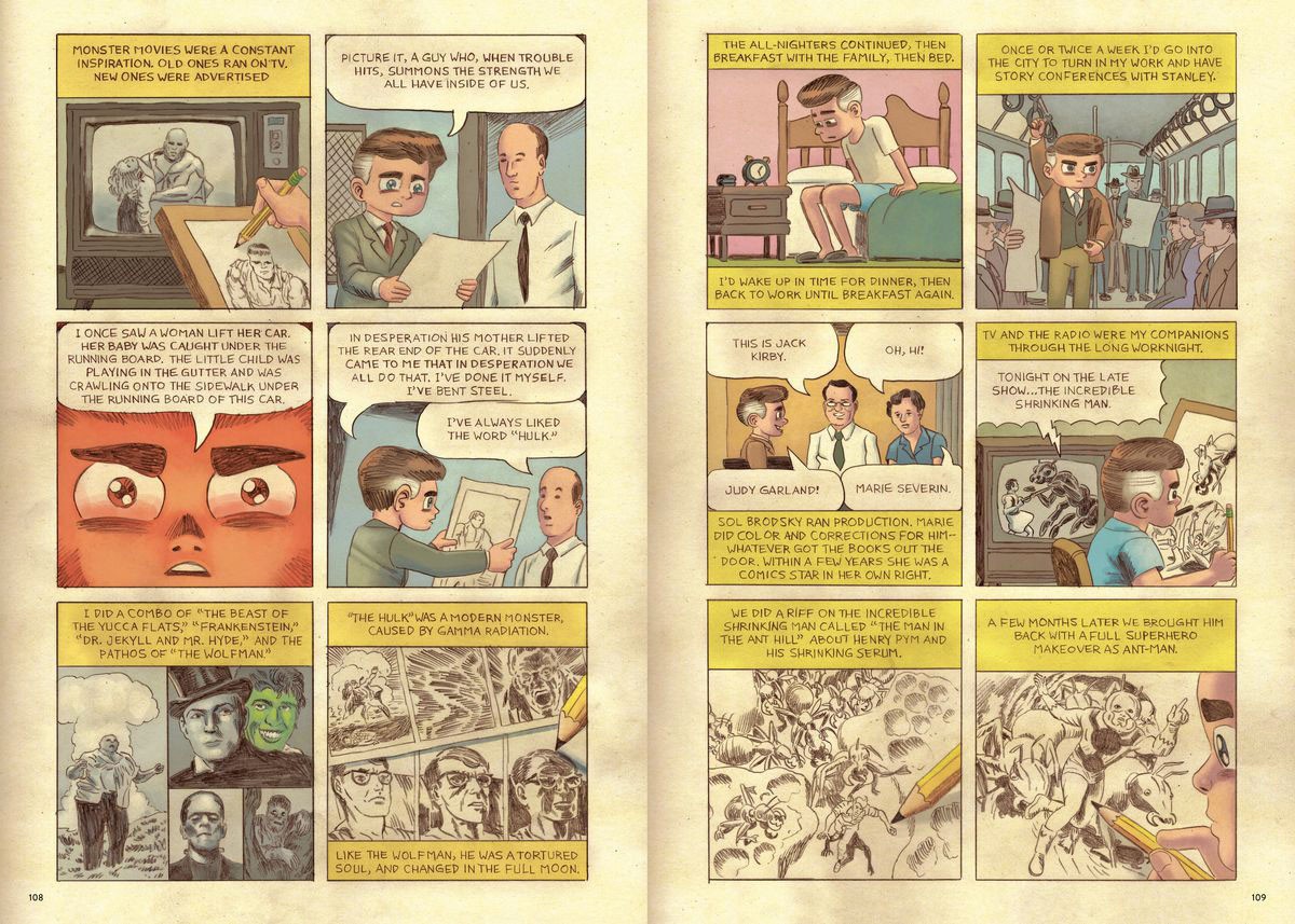 Condensare in poco meno di 200 pagine l’intensa vita personale e professionale di Jack Kirby – dalla sua nascita, anzi dal momento dell’incontro dei suoi genitori, fino alla sua morte – che è ricca di decine di aneddoti, incontri e svolte impreviste e imprevedibili, è sicuramente un’operazione complessa, soprattutto usando il medium fumetto.