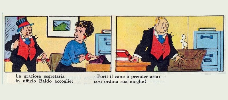 Negli anni Venti il “Corriere dei Piccoli” pubblicava in Italia i più noti comics americani del tempo: Happy Hooligan, the Katzenjammer Kids, Felix the Cat, Maggie and Jiggs, tutti ribattezzati con nomi italiani. E c’erano delle serie italiane, alcune di ottima qualità come gusto grafico e stile dell’epoca. A quel tempo in Italia il sistema dei balloons con le frasi del dialogo non era ancora entrato nell’uso (cominciò negli anni Trenta quando fu importato Mickey Mouse); il “Corriere dei Piccoli” ridisegnava i cartoons americani senza balloons, che venivano sostituiti da due o quattro versi sotto ogni cartoon.