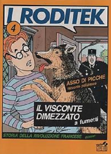 Non molto “autoriale” invece almeno la veste grafica del Visconte Dimezzato a fumetti, proposto in questo Roditek del 1989, come storia compendiaria di un giallo per ragazzi, “Asso di Picche”.