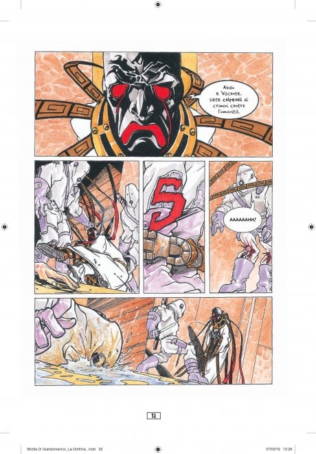 Inoltre, l’opera si pone – in modo consapevole e intenzionale – come riscrittura di V for Vendetta, a sua volta riscrittura di 1984. Dal dialogo con questi due testi, Bilotta e Di Giandomenico creano un capolavoro di piena dignità autonoma (e chi mi segue sa quanto sia parco nell’utilizzare questo termine).