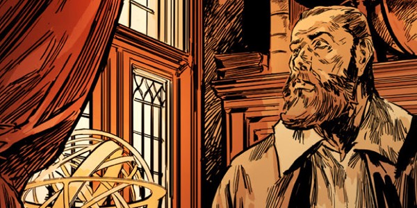 Del 2017 è un altro interessante approccio a Galilei, quello de “I sapienti” di Luca Blengino e Stefano Carloni, di cui si parla qui. In questo caso, Galileo, Keplero, Copernico e Paracelso diventano degli investigatori in un giallo di sapore holmesiano. Una trouvaille più sensata di quanto sembri, in quanto il metodo deduttivo di Holmes ha innegabili debiti con le scienze esatte di matrice galileiana.
