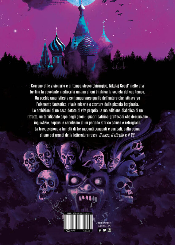 Il naso, Il ritratto e Il Vij sono tre dei suoi racconti più celebri in quest’ambito, e vengono presentati in questa trasposizione a fumetti realizzata da Francesco De Benedittis ai disegni e da Luca Franceschini ai testi, pubblicata da Edizioni NPE e in libreria dal 1 dicembre 2023.