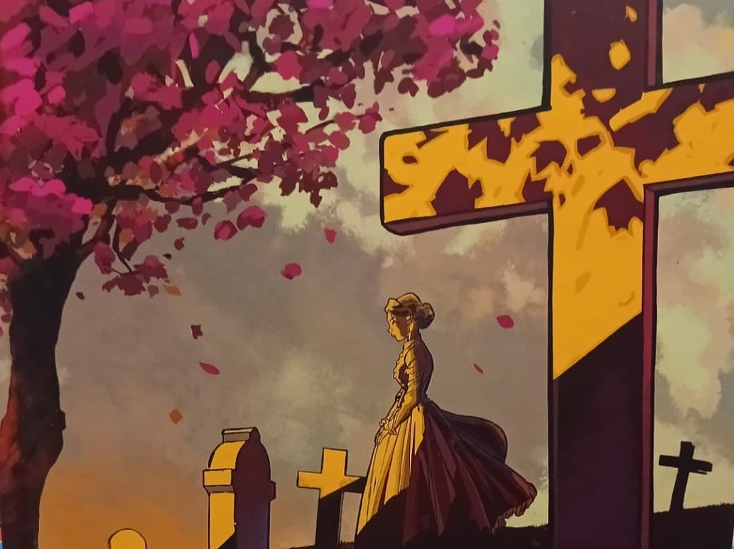 La storia prosegue con un montaggio di tavola elegante, mosso, segnato in particolare da una colorazione eccezionalmente riuscita. Sotto il profilo formale, l’aspetto più affascinante di queste tavole (evidente fin dalla copertina) è l’uso dei giochi di luce generati in particolare dalla proiezione delle colorate ombre del fogliame (come l’albero sulla croce in copertina).