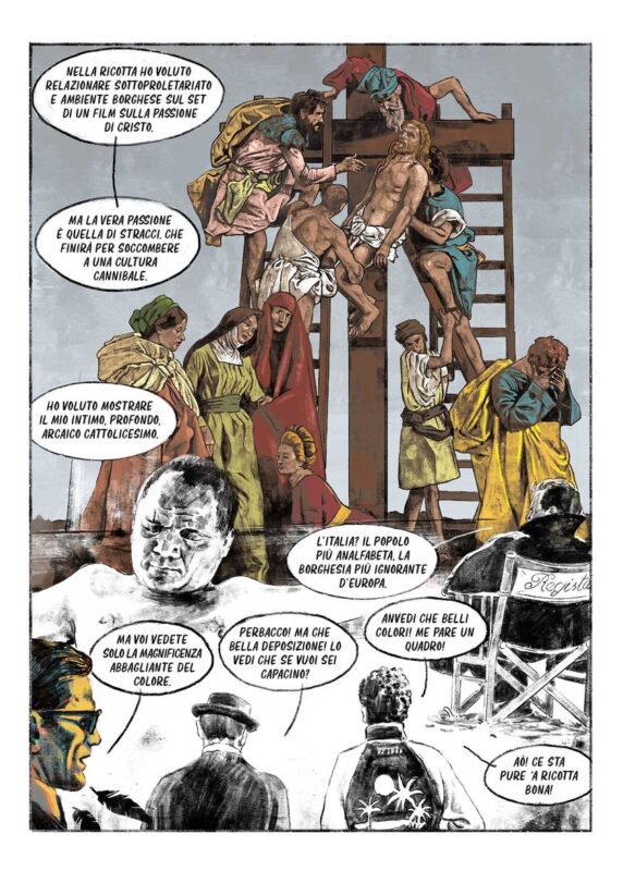 Lo stesso Pasolini si era avvicinato, per certi aspetti, al fumetto: il suo “La terra vista dalla luna” nasce dichiaratamente pensando lo storyboard come un fumetto nelle esplicite dichiarazioni dell’autore. Avete indagato anche questo aspetto dell’autore, magari nella documentazione per la realizzazione delle opere?