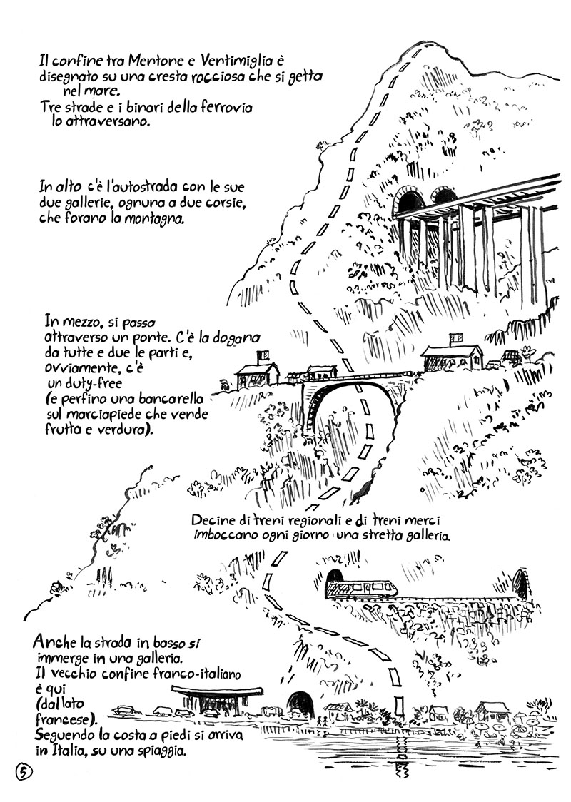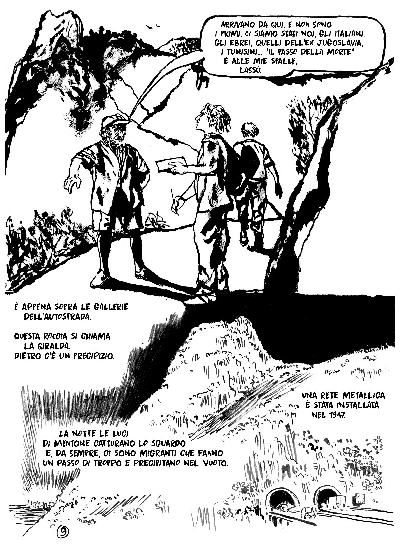 Un libro di grande attualità, e di aperto sentimento solidale. Un tema che ci tocca oggi, italiani ed europei e di cui si parla molto. Il racconto, un sincero reportage scritto e disegnato durante il percorso, di quella linea inventata dall’uomo, che è il confine, e quella naturale, fatta d’acqua, il Roja.