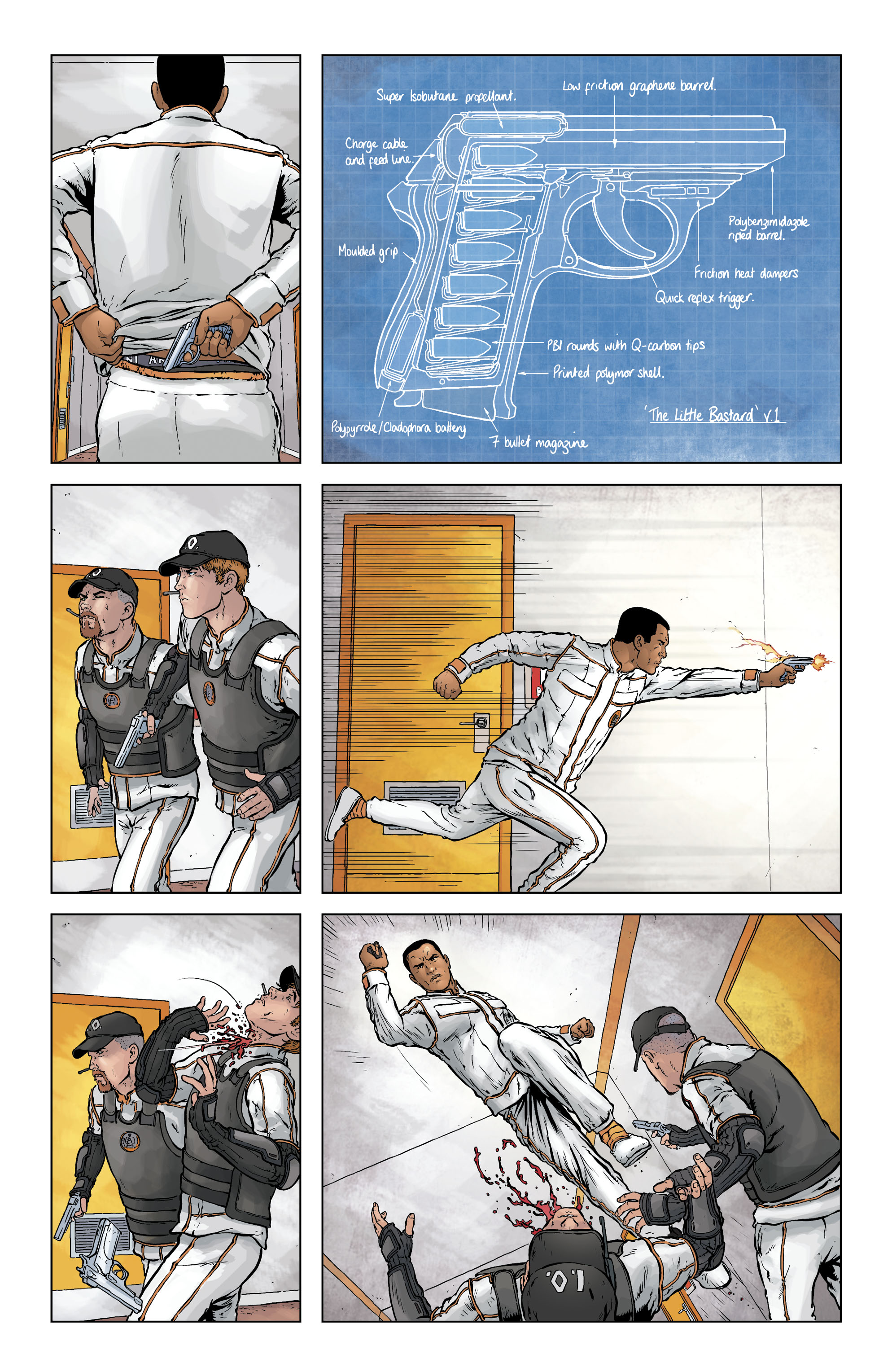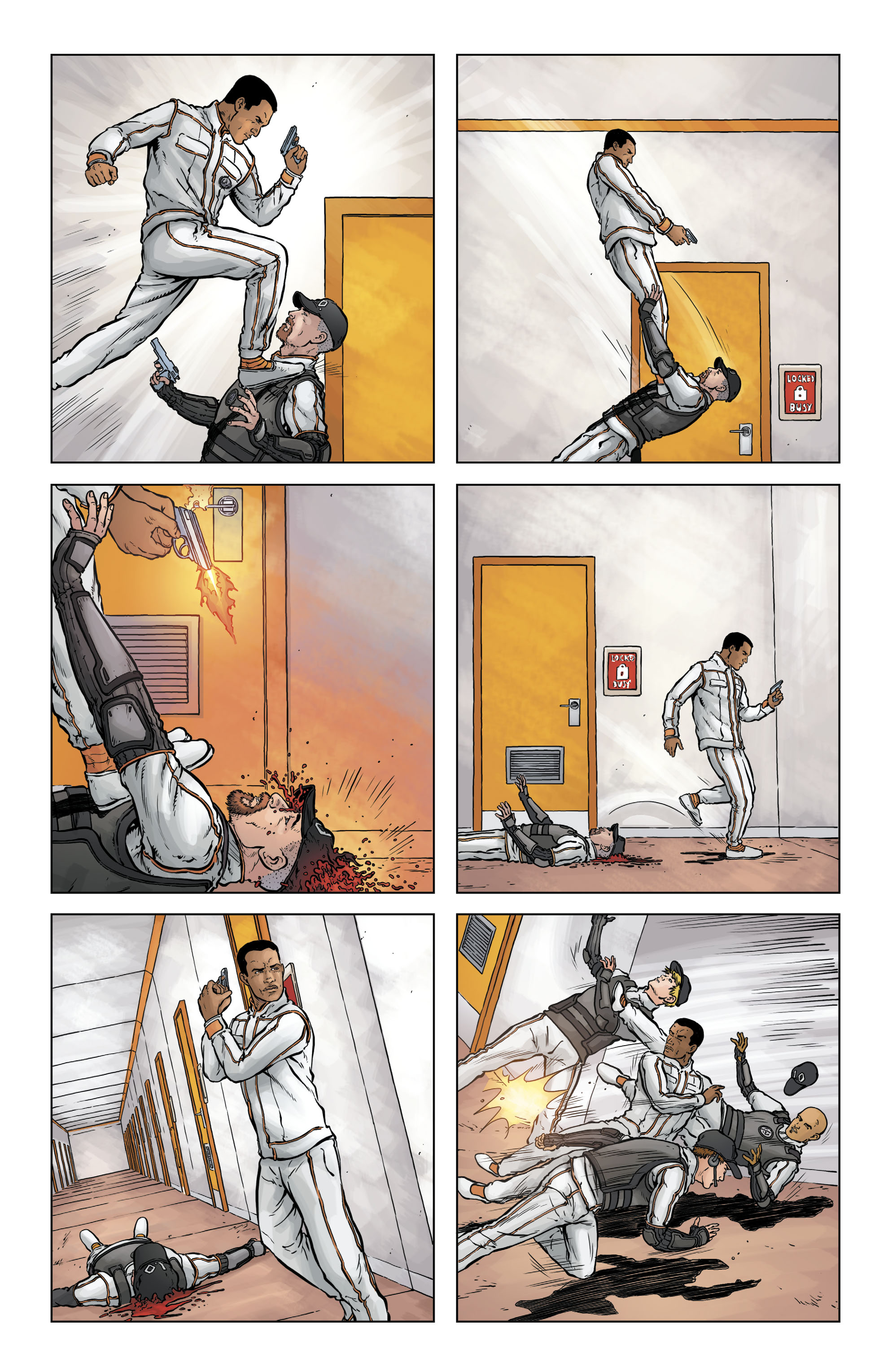 Il movimento, l’enfasi, sempre e comunque, senza pause, senza decidere quale inquadratura o sequenza richieda di essere sottolineata da un layout più complesso o da una splash-page. No. Tutto sparato in faccia come una band metal che conosce solo due registri: “suono distorto” e “suono ancora più distorto”.