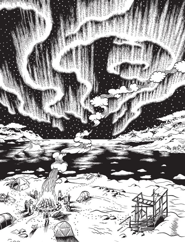 La cupezza dell’ambientazione viene sottolineata anche dall’abbandono del colore a favore di un bianco e nero netto, in cui il dettaglio e il tratteggio insistito spesso delineano forme quasi tridimensionali come delle colossali nuvole di fumo, la luce di quella che sembra un’aurora boreale, edifici fatiscenti, la pioggia battente. L’abbandono del colore è una scelta quasi obbligata da parte dell’autore che, nonostante la giovane età, sente di non avere la forza sufficiente per realizzare tutte le storie che ha in testa, per cui decide che lo utilizzerà solo in casi sporadici, a favore dell’utilizzo più rapido della semplice china.