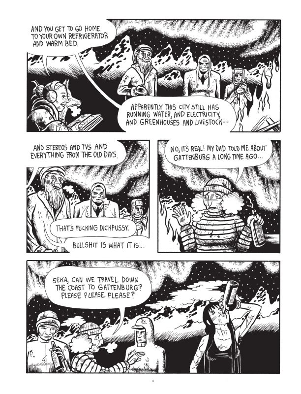 Questo espediente narrativo, questo scopo apparente fornisce lo spunto iniziale della storia, quando Simmons “inganna” il lettore realizzando una prima sequenza positiva nella vita del gruppo: trovano una specie di bunker pieno di scorte alimentari, vestiti e armi. Recuperano anche un diario dove si parla di Gattenburg e di come sia possibile farsi accettare ed entrare in quella città se si riesce a vincere una gara di tiro al bersaglio. Durante la serata spensierata, in cui vengono presentati gli otto personaggi e le loro dinamiche interpersonali, il gruppo decide di provare ad arrivare in quel luogo.