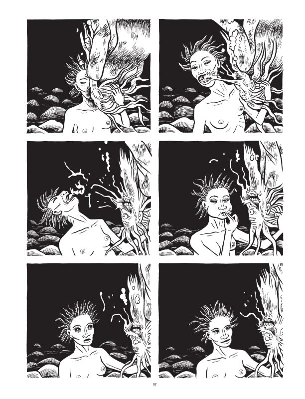 Se nell’antologia The Furry Trap, di cui ho parlato diffusamente la settimana scorsa, si vedeva l’evoluzione grafica, ma soprattutto narrativa, di Josh Simmons, per cui l’autore riusciva a passare da storie horror, in cui inizialmente la violenza era rappresentata dettagliatamente, quasi a oggettivizzare la situazione, senza però indugiarvi in maniera morbosa, a dei racconti in cui l’effetto di malessere e inquietudine veniva trasmesso senza passare attraverso un uso esplicito del sangue e della letterale distruzione fisica della vittima, è con Black River, volume uscito nel 2015 dalla Fantagraphics Books, lo stesso editore dell’antologia appena citata, che la maturità di Simmons raggiunge il suo apice.