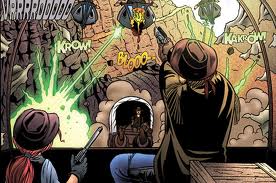 Il problema principale di tutta l’operazione è che il fumetto e il cinema sono due medium molto diversi: il cinema agglomera in sé elementi quali la musica, la fotografia, gli effetti speciali, che il fumetto per suoi limiti strutturali non può ricreare. E un operazione come Cowboys & Aliens, di solito, si basa tutta sugli elementi cinematografici poc’anzi menzionati: gli effetti speciali e la colonna sonora hanno un grandissimo impatto sul pubblico fruitore di questi prodotti tutt’azione e che, per una larga fetta di pubblico, diventano quasi l’unico motivo di andare a vedere un film di questo genere. Il non poter neanche lontanamente eguagliare tale spettacolo rende abbastanza sterile aver voluto creare un graphic novel più lungo del canovaccio scritto da Rosemberg dal quale si era inizialmente partiti, in quanto la storia è semplicemente un pretesto per mostrare le ultime meraviglie che la tecnologia cinematografica è riuscita a creare.
