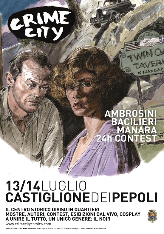 La nuova, grande manifestazione sul genere NOIR dell’Appennino Tosco-Emiliano, seguito radicalmente rinnovato di MONTAGNA IN GIALLO, sta per prendere il via! Il 13 e il 14 luglio il centro storico del paese di CASTIGLIONE DEI PEPOLI sarà ridisegnato in quartieri tematici che ospiteranno i più disparati eventi: incontri con gli autori (quest’anno saranno dei nostri i maestri Carlo Ambrosini e Paolo bacilieri!), mostre (tra le quali una dedicata a Napoleone e una personale del maestro Milo Manara!), un 24h contest aperto a tutti i fumettisti d’Italia (l’iscrizione online è aperta fino alla mattina dell’evento e la giuria sarà composta dagli stessi Ambrosini e Bacilieri!), e poi un esibizione di Cosplay, conferenze (una, deliziosa, su Dracula, in compagnia del grande Riccardo Mazzoni!), Artisti di strada, concerti, eventi per i più piccoli! insomma, ne vedremo delle belle!