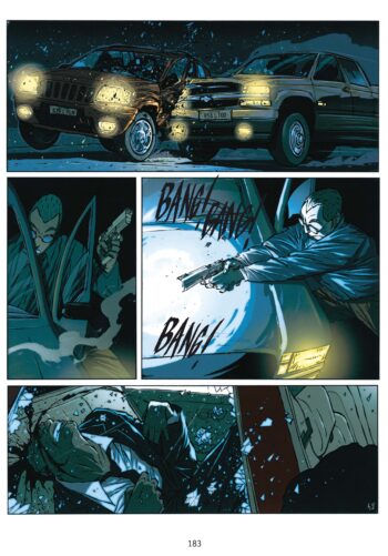 Accanto alla sceneggiatura di Matz, che decolla effettivamente dalla seconda storia, troviamo gli ottimi disegni di Luc Jacamon, che invece splende sin dal primo capitolo. L’artista presenta delle tavole di grande pregio, con una griglia asimmetrica che si svincola dai canoni classici della bande dessinée, offrendo un dinamismo più vicino al fumetto americano che a quello europeo. Particolarità ulteriore, che dimostra una costruzione della griglia ricercata, si ha nelle scene d’azione, scomposte in una moltitudine di vignette in cui l’artista si sofferma sui singoli dettagli, contrapposta a sparute splash page singole che presentano alternativamente momenti di quiete assoluta, utili a spezzare e rallentare il ritmo narrativo, e momenti di psicosi estrema in cui la gabbia esplode letteralmente come se fosse stata distrutta per poi essere ricomposta, con un suggestivo effetto di straniamento che ben veicola i momenti rappresentati.