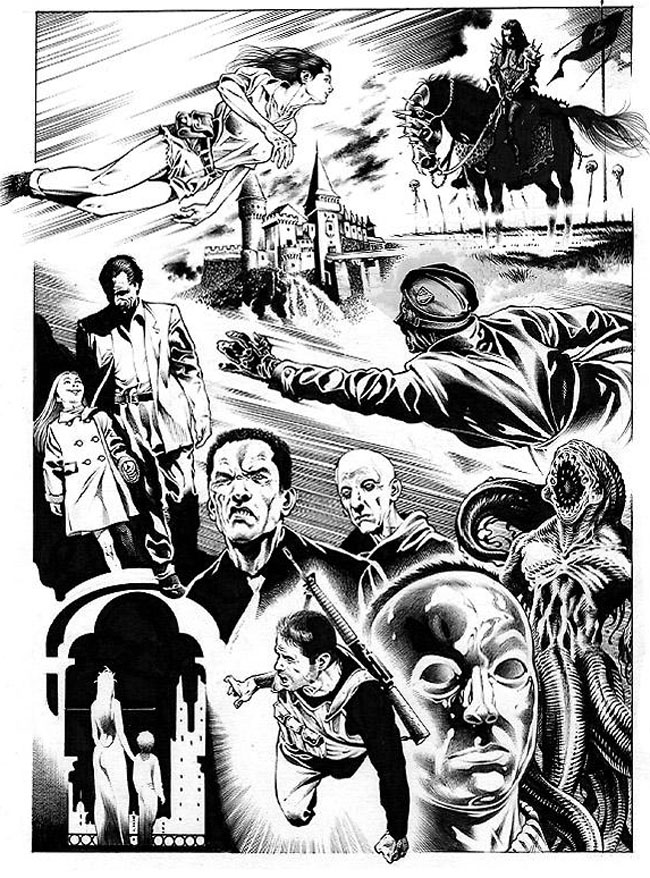 Lungi da essere scelta puramente estetica, la presenza di queste tavole a tutta pagina sottolinea i passaggi della storia nei quali i personaggi si trovano ad attraversare le realtà incomprensibili del multiverso, a indicare che le eccezioni alla classica griglia bonelliana segnano i momenti dove il racconto si svolge su un piano assolutamente alieno alla normale, seppur fantastica, realtà narrativa. Quest’ultima rappresentata nella normale griglia a tre strisce.