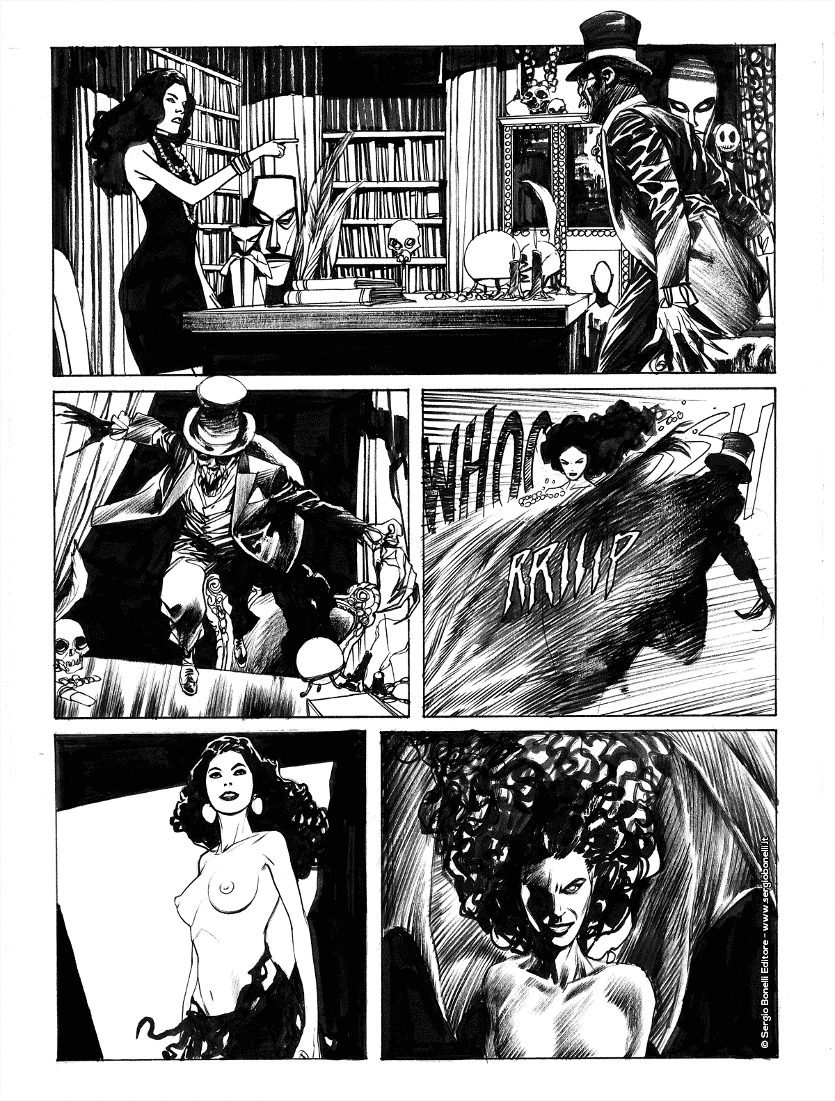 Se nel numero precedente Mauro Boselli, autore della sceneggiatura, aveva preparato bene il terreno attraverso un convincente cocktail di indagine investigativa e bizzarre escursioni in bordelli multidimensionali, è con questo numero che riesce a chiudere le tante vicende in sospeso. Compie un ulteriore passo verso lo scontro con i Grandi Antichi, oltre ad approfondire lo stato di salute di Kurjak, figura sempre più centrale della saga, portatore della Pallida Maschera, araldo sulla Terra degli Antichi. Davvero interessante notare come, attraverso una prosa pregna e descrittiva, lo scrittore riesca a far diventare il luogo dell’azione un vero e proprio attore del cast: lo era stata la sordida e brumosa New Orleans della prima parte e lo sono ora Ulthar, la città dei gatti, e Dylath Leen dominio dell’uomo nero.