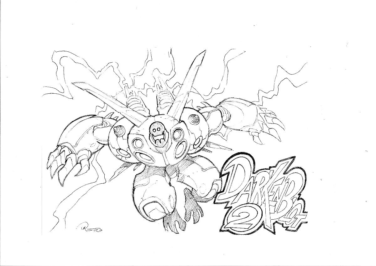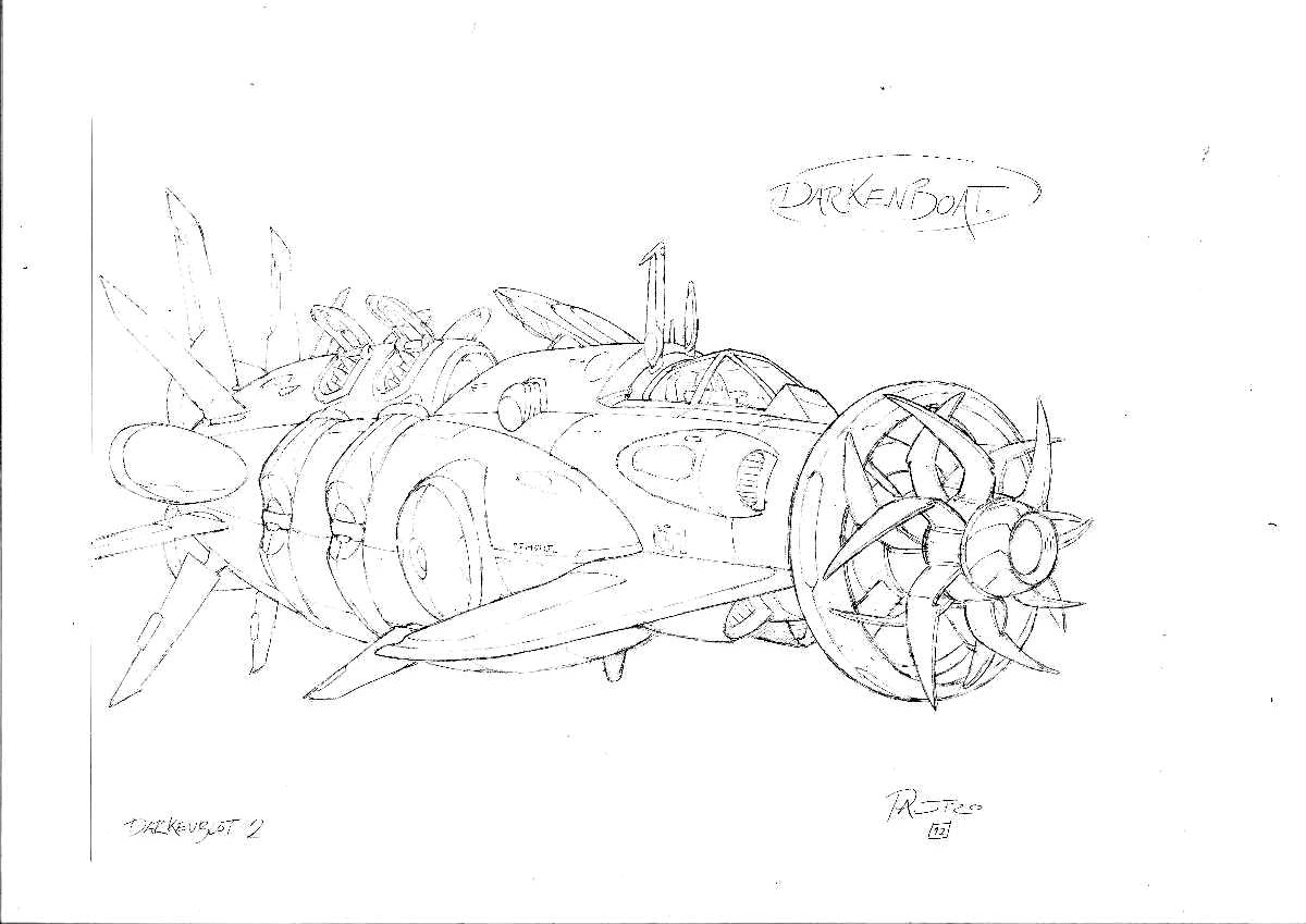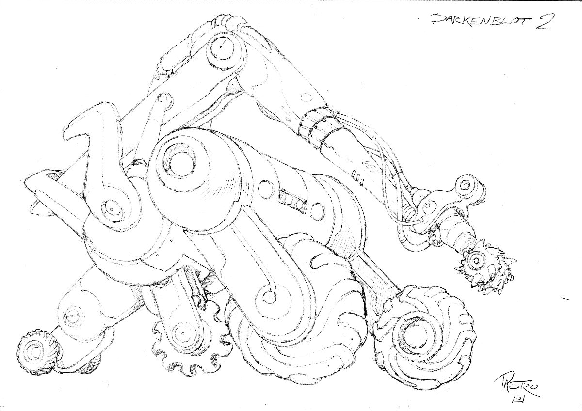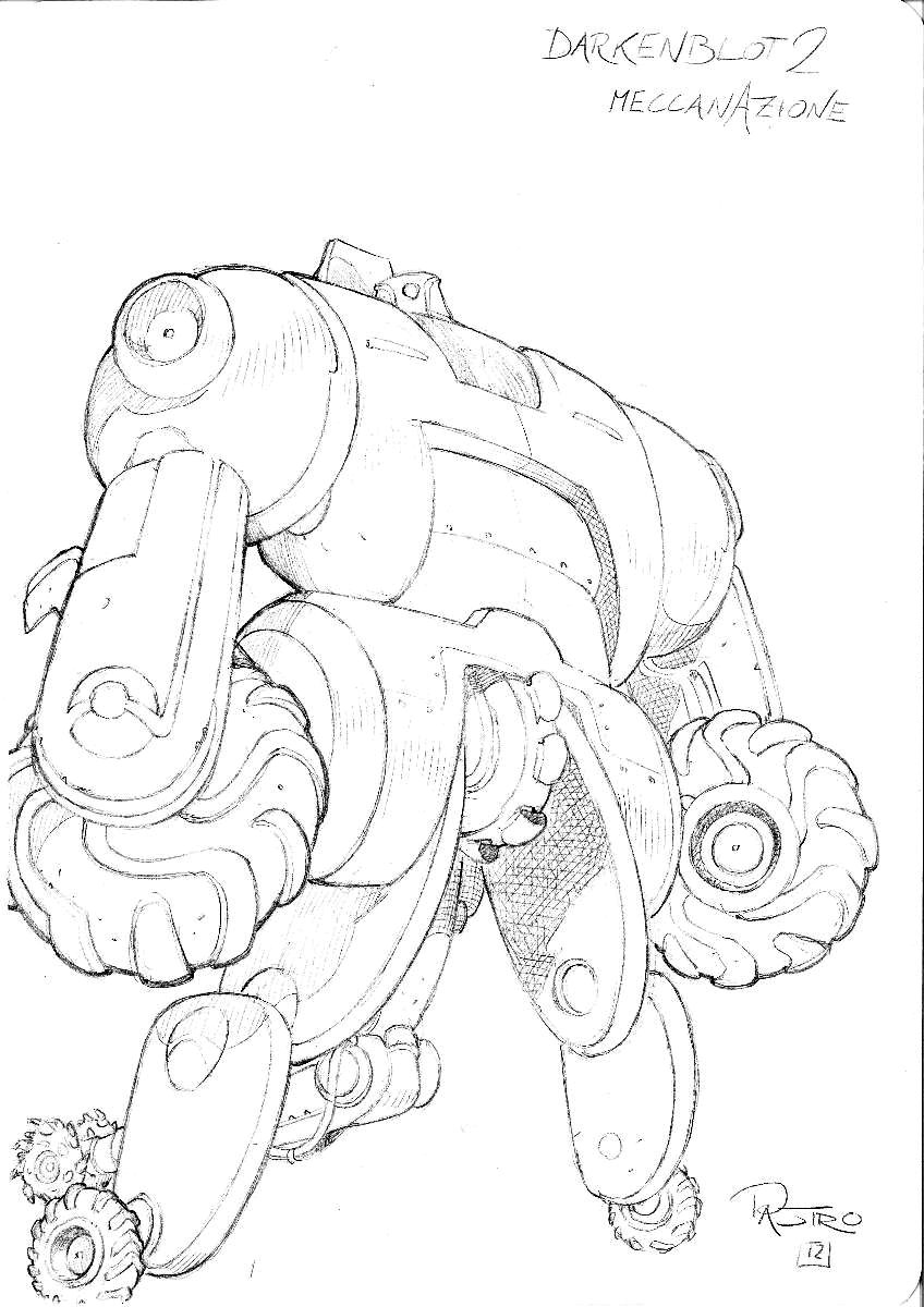 Anche per “DarkenBlot 2.0 Regeneration” è stato così, lunghe telefonate e giornate passate assieme a buttar giù idee e bozzetti ( io che arrivo con una quintalata di disegni di robot e astronavi che Casty guarda con stupore misto a… diffidenza:).