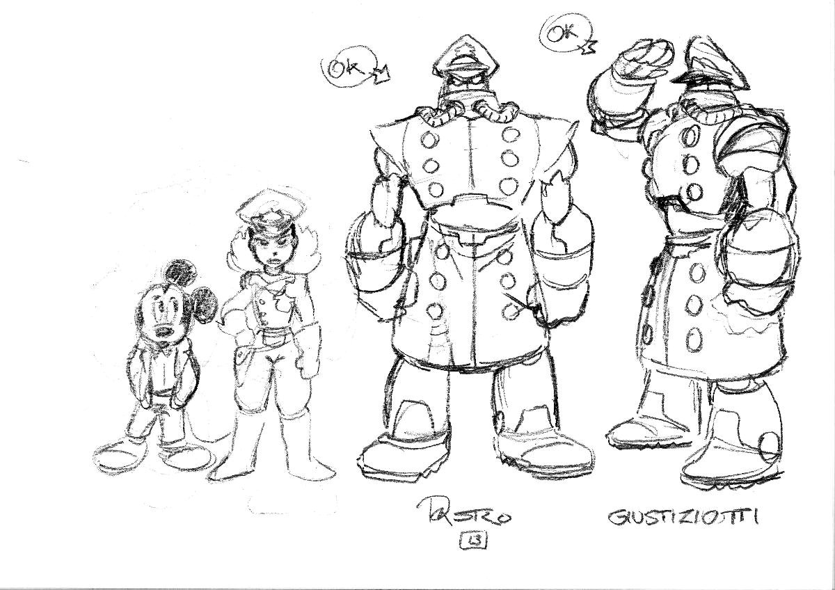 Da parte mia il problema era che, in un contesto così “serio”, Topolino mi sfuggisse di mano e iniziasse ad agire sopra le righe o, forse peggio, che si trovasse ad agire in maniera “ridicola” se messo in relazione coi suoi comprimari. Poi però ho pensato al modo in cui meravigliosamente interagiscono i protagonisti di Toy Story: soldatini, Mr Potato e bambole di pezza possono tranquillamente “convivere” se trovi il giusto tono da dare alla storia.