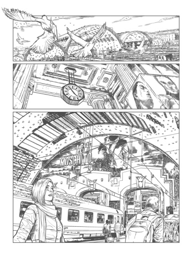 Si contraggono a partire dal flashback che introduce la madre, e il lettore, all’accaduto, in un vortice che porta il lettore a conoscere la reazione di ciascun personaggio.  Ogni cambiamento è scandito dai pensieri della ragazza, che riscopre un mondo dai paesaggi a lei sconosciuti, fino all’arrivo nell’appartamento in cui il ritmo si fa sincopato e si identifica con i volti dei nuovi protagonisti, con le porte che chiudono stanze sconosciute. La casa diventa luogo di grande tensione narrativa, claustrofobico e caotico. Efficaci in tal senso le tavole, illustrate da Walter Trono, in cui una semplice porta o un rumore sono elementi che creano un cambiamento di tono e suggestioni che strizzano l’occhio al thriller.  Ogni tavola contribuisce a delineare il senso panico e di straniamento di Martina,  una tensione emotiva che cresce inevitabilmente nel lettore insieme all’affezione per le vicende.