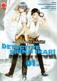 Detective Shinji Ikari è ulteriore derivato di quella possente macchina mitopoietica che è la serie animata Neon Genesis Evangelion (Hideaki Anno, Gainax – 1997). In questa interpretazione, gli autori (disegni: Takami Yoshimura, soggetto: Studio Gainax e Studio Khara) scelgono un approccio che, pur senza abbracciarla completamente, appare vicino alla parodia. Molti dettagli contribuiscono a definire un’atmosfera leggera: l’insistenza pedissequa nel rimarcare la sfiducia di Shinji in se stesso e negli altri, la natura degli EVA, qui ricondotti a tipici geni evocati tramite gioielli magici, non però disposti a obbedire a qualsiasi ordine delle loro controparti umane, e, soprattutto, la sequenza di piccole indagini di ambiente scolastico, che si svolgono con non pochi siparietti comici. Siamo quindi assai lontani dalla cupezza e problematicità morale ed esistenziale della serie animata e della riduzione a fumetti che Sadamoto sta portando avanti con molta calma. Per ora, l’opera (peraltro composta da due soli volumi) sembra niente aggiungere all’universo e all’immaginario da cui deriva e in questo senso resta relegata all’ambito di lettura per soli fan completisti.