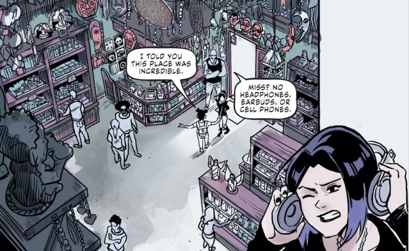 Di fronte a queste scelte si potrebbe parlare di depotenziamento, ma in realtà non è così, soprattutto se si continua a tenere presente il pubblico di riferimento. L’obiettivo è raggiungere degli studenti che passano il loro tempo in classe, in corridoio, nei luoghi deputati alla ricreazione e, finita la scuola, si riversano nelle palestre, nelle strade, oppure si chiudono nelle loro camere in compagnia di auricolari e smartphone. Per farlo la via più semplice e forse più efficace prevede proprio raccontare queste attività e questi luoghi, mostrare quali rapporti si possano stringere con questi mezzi e in questi ambienti. Qui sta il punto di forza di Teen Titans: Raven, che finisce esattamente per innestare il supereroico nel quotidiano, trasformando quell’autoreferenzialità nella molla per parlare d’altro, utilizzando personaggi con abilità speciali, che in virtù delle loro personalità particolari riescano a catturare l’attenzione.