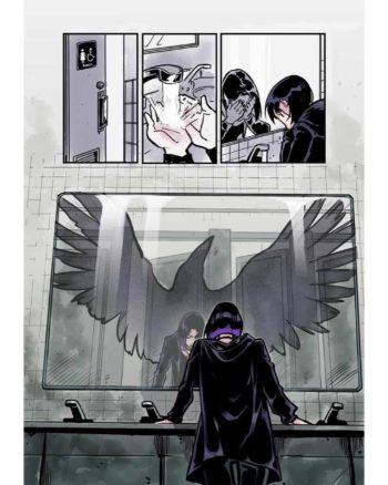 “Reader friendly” sembrano le parole d’ordine anche per il colorista David Calderon, che utilizza prevalentemente il bianco, il nero e una scala di grigi, da ravvivare di tanto in tanto con spruzzate di tinte pastello, al fine di mettere in evidenza questo o quel character a seconda della sua rilevanza nel segmento diegetico preso in esame. La scelta di puntare su una preponderante tricromia, come accaduto per Harley Quinn: breaking glass, altro titolo stampato sotto l’etichetta DC Ink, marca l’identità dell’operazione editoriale e la distingue dalla maggioranza dei prodotti delle due major statunitensi.