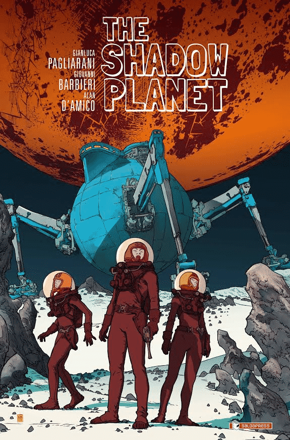 THE SHADOW PLANET è film a fumetti (a colori), per rivivere il brivido dell’orrore cosmico creato da H.P. Lovecraft in un’ambientazione di retro-fantascienza alla maniera di un classico come Il pianeta proibito. A firmarlo sono appunto i Blasteroid Bros, il collettivo creativo formato dallo sceneggiatore Giovanni “James” Barbieri, dal disegnatore Gianluca “Johnny” Pagliarani e dal colorista Alan “Junior” D’Amico. Il graphic novel è disponibile in libreria, in fumetteria e nello shop del sito saldapress.com in ben tre versioni: brossurato da 96 pagine al prezzo di 12.90 euro, cartonato da 128 pagine contenente sketch e materiali speciali a 19.90 euro e cartonato deluxe da 144 pagine con altri materiali speciali, astuccio, in tiratura limitata e firme degli autori a 29.90.