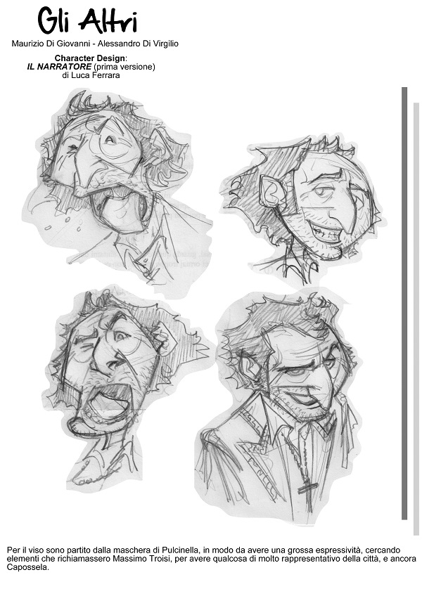 Anche lo stile del disegno adottato dal salernitano Luca Ferrara è molto funzionale a un lavoro come quello di questo libro. Neri netti che caratterizzano le scene in cui è presente il narratore, personaggio molto ben caratterizzato, che grazie alle sue introduzioni ci dona una chiara chiave di lettura dei testi pur restando sempre protagonista attivo – sono infatti alternati a chiaroscuri e mezzetinte che evocano immagini d’effetto e danno profondità e spessore psicologico ai personaggi che popolano le tre storie, dallo svolgimento carico di pathos e sentimenti contrastanti, composte da tavole dalle inquadrature molto evocative e dai tempi narrativi molto ben connotati. Alla luce di quanto scritto possiamo affermare quindi che l’acquisto di questo tomo, molto bello e d’atmosfera, sia estremamente consigliato tanto agli amanti della tradizione teatrale italiana quanto agli appassionati del buon fumetto.
