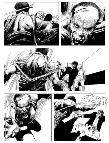 Il compito di visualizzare i sintomi dell’infezione, con deformazioni di corpi e di volti, spetta a Corrado Roi che spesso incide le figure, sia fisse che in movimento, su sfondi bianchi e vuoti da sporcare con il nero pesante delle ombre. Oltre che ai riquadri scontornati, l’artista ricorre all’asimmetria per disporre alcune vignette lungo le tre strisce della gabbia, conferendo alle tavole un senso di dinamismo che asseconda ideologicamente il cambio di punto di vista, repentino ma giustificato, del protagonista.