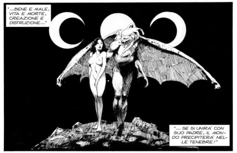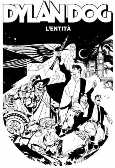 La copertina di Gigi Cavenago, a cui è affidato anche il nuovo frontespizio rielaborazione misterica de La libertà che guida il popolo (1830) di Eugene Delacroix, ha una funzione introduttiva e simbolica: al centro torna Groucho accanto a Dylan; in alto la triplice luna, nonché il ciclo lunare, simbolo dell’oscurità, poi esotericamente invertito a pagina 79; in basso un demone e una fanciulla nell’Eden: violazione occultistica della storia di Adamo ed Eva o preannuncio della cacciata dei progenitori?