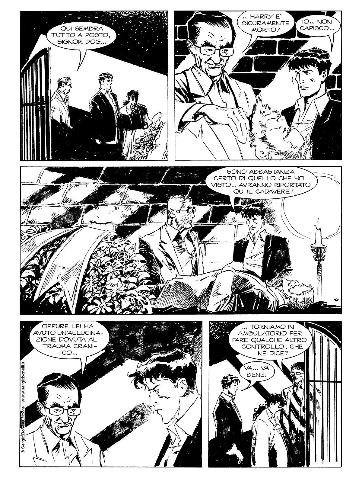 Il tratto affilato e spigoloso di Caretta, alla prima apparizione sulla serie regolare, risolleva le sorti di un episodio poco incisivo: il disegnatore punta su un netto contrasto tra bianco e nero e conferisce enfasi alle espressioni facciali, in particolare a quelle delle figure sovrumane. Per quanto riguarda questo secondo aspetto l’artista sembra avvicinarsi al fumetto mainstream statunitense, soprattutto a certa mimica portata su carta da Greg Capullo, mentre in altre circostanze, come nel caso della ricostruzione di sfondi e ambienti naturali, è evidente la ricerca di realismo di scuola bonelliana.