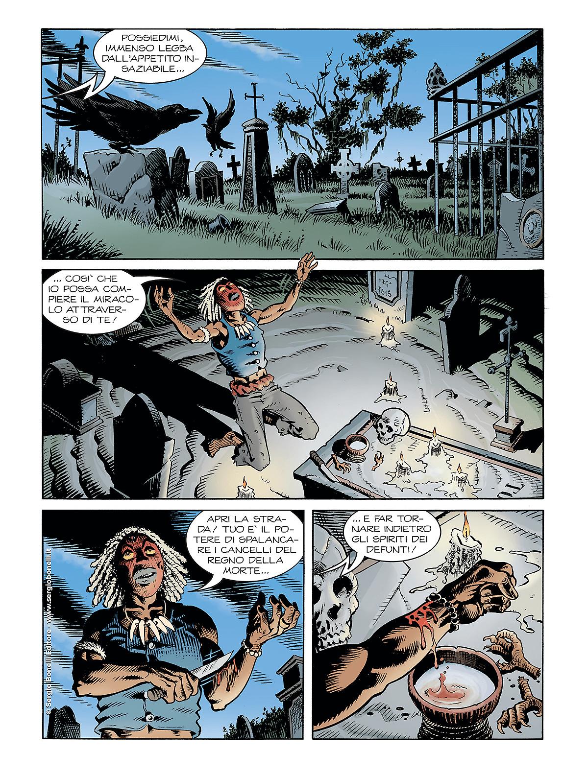 Zagor e Cico raggiungono New Orleans per aiutare il loro amico “Guede’” danseur nella lotta contro uno stregone vudu che ha trasformato gli schiavi delle piantagioni in un esercito di zombi al suo servizio e a quello di un ricco bianco senza scrupoli.