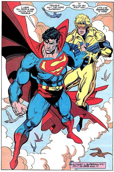 Un’altra cosa che volevamo fare era mostrare l’importanza che Superman ha per il mondo, eliminandolo. È la stessa cosa di quando muore un personaggio importante: comprendiamo cosa significava per noi e cosa significasse per il mondo. Ucciso Superman, abbiamo iniziato a scrivere storie sugli altri personaggi e sulle loro reazioni quando hanno capito che era più importante di quanto pensavano. La cosa affascinante è che, quando lo facemmo, divenne immediatamente un evento: i giornali iniziarono a cercarci, a scrivere articoli. Per un breve periodo, realtà e fantasia si mischiarono insieme!