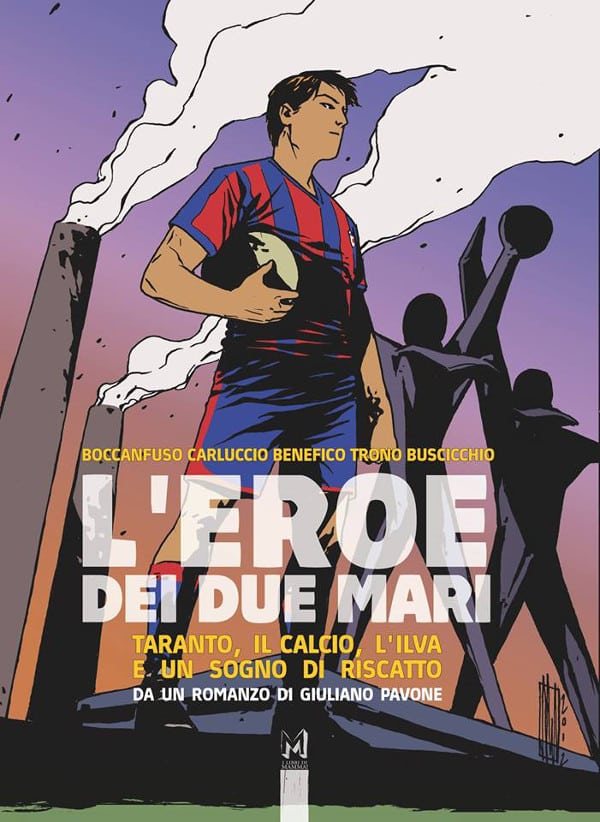 Avevo letto e amato il romanzo di Giuliano Pavone, che poi ho conosciuto attraverso un amico comune: quella è pure un’opera che parte da uno spunto quasi “fantastico” e lo usa come grimaldello per affrontare alcune criticità ben presenti a Taranto (nella storia un calciatore di livello internazionale, per un voto religioso, passa a giocare nella squadra del Taranto). Giuliano mi ha poi rivelato l’intenzione di realizzare una versione a fumetti della storia, che mi ha entusiasmato tantissimo perché, oltre che disegnatore, sono anche un grande appassionato di calcio! Così abbiamo messo in piedi il progetto: della stampa si è occupato il giornalista Carlo Gubitosa, un altro tarantino, trapiantato stavolta a Bologna, dove aveva fondato la sua casa editrice. Naturalmente, non essendoci dietro una grossa realtà editoriale, non era possibile pagare i disegnatori a tavola, ma solo attraverso le copie vendute, fatto che avrebbe reso più lunga e complessa la ricerca degli artisti. Così, mi è venuta l’idea di coinvolgere i ragazzi di LABO Fumetto, la realtà con cui collaboro a Taranto. Quindi sia gli insegnanti (Gabriele Benefico e Walter Trono), che gli allievi più meritevoli (Virginia Carluccio e Alberto Buschicchio). La copertina invece è di Alessandro Vitti, mentre mio fratello Edoardo, che è pittore, ha realizzato la cover interna. L’intento era realizzare un prodotto legato esclusivamente ad artisti tarantini, offrendo allo stesso tempo un’opportunità di lavoro professionale e retribuito a chi ancora non ne aveva: gli allievi hanno avuto così delle scadenze precise e si sono confrontati con me, che ho svolto il lavoro di supervisione e revisione. Il tutto è poi culminato in una serie di presentazioni in giro per l’Italia, fino alla mostra delle tavole originali presso il Castello Aragonese di Taranto. È un progetto che ricordo sempre con grande piacere e che alla fine ha avuto anche un grande successo di vendita, tanto che oggi tutte le copie sono esaurite.