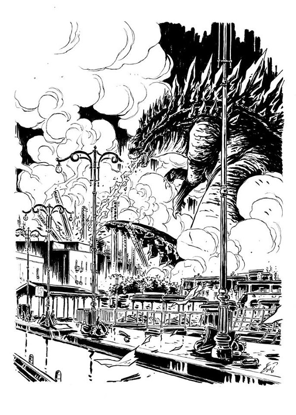 All’ultima edizione del Taranto Comix hai presentato una cartellina con due illustrazioni, firmate da te e da tuo fratello Edoardo. La tua, in particolare, ha per soggetto Godzilla che distrugge l’Ilva, un’immagine potente e simbolica. Raccontami com’è nata.