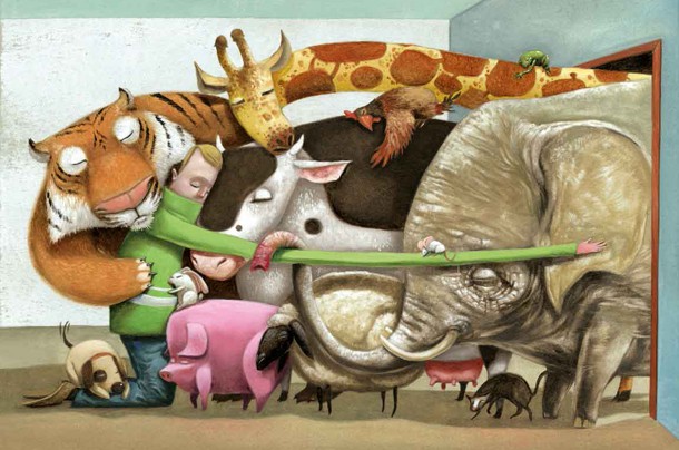 This book came from one day talking with my partner; we realized that all the visual information about what’s beneath products or amusements where animals are involved was very raw, as it is indeed. But people that do not empathize with animals too much normally refuse to see it. These images are extremely shocking for children as well, so I decided to use the silent language of illustration to show this reality in a “poetical” way, less shocking but not less hard. The reality is hidden under things, and people never have to stop to think about it, because no one has ever explained it to them. The only thing that people that knew have been doing is lying, lying, lying to the public. This is how Sinpalabras was born.